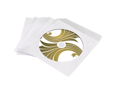 Protective paper sleeve with a clear plastic window that allows disc artwork to show through.