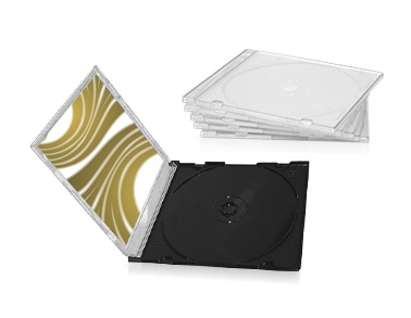 Thin version of the standard jewel case. Thin jewels are made of hard plastic and allow for a printed front insert to display your artwork, song list or any other marketing content.